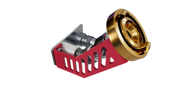 The Phoenixpreventer COMPACTmobile is a wall-mounted fire suppression system designed for rapid deployment in the event of a fire. When activated, it automatically unfolds from its wall bracket onto the floor, where it is positioned between the burning battery and the parking surface using a push rod. Its unique geometry allows for flexible placement, either centrally or offset, beneath the vehicle.
